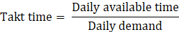 As the first step in implementing standardized work, the takt time was calculated as shown in Eq. 1, using the following data: