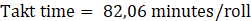 Since the calculated takt time is 82,06 minutes/roll and the cycle time before the improvement was 101,97 minutes/roll, changes to the production line are required. Consequently, the SMED and 5S tools were implemented to reduce time and improve activity organization. As the last step, after implementing these tools, the standardized work sheet was created.