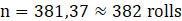 A sample of 382 rolls was taken, with each roll weighing 25 kg, totaling 9550 kg of material entering the system.